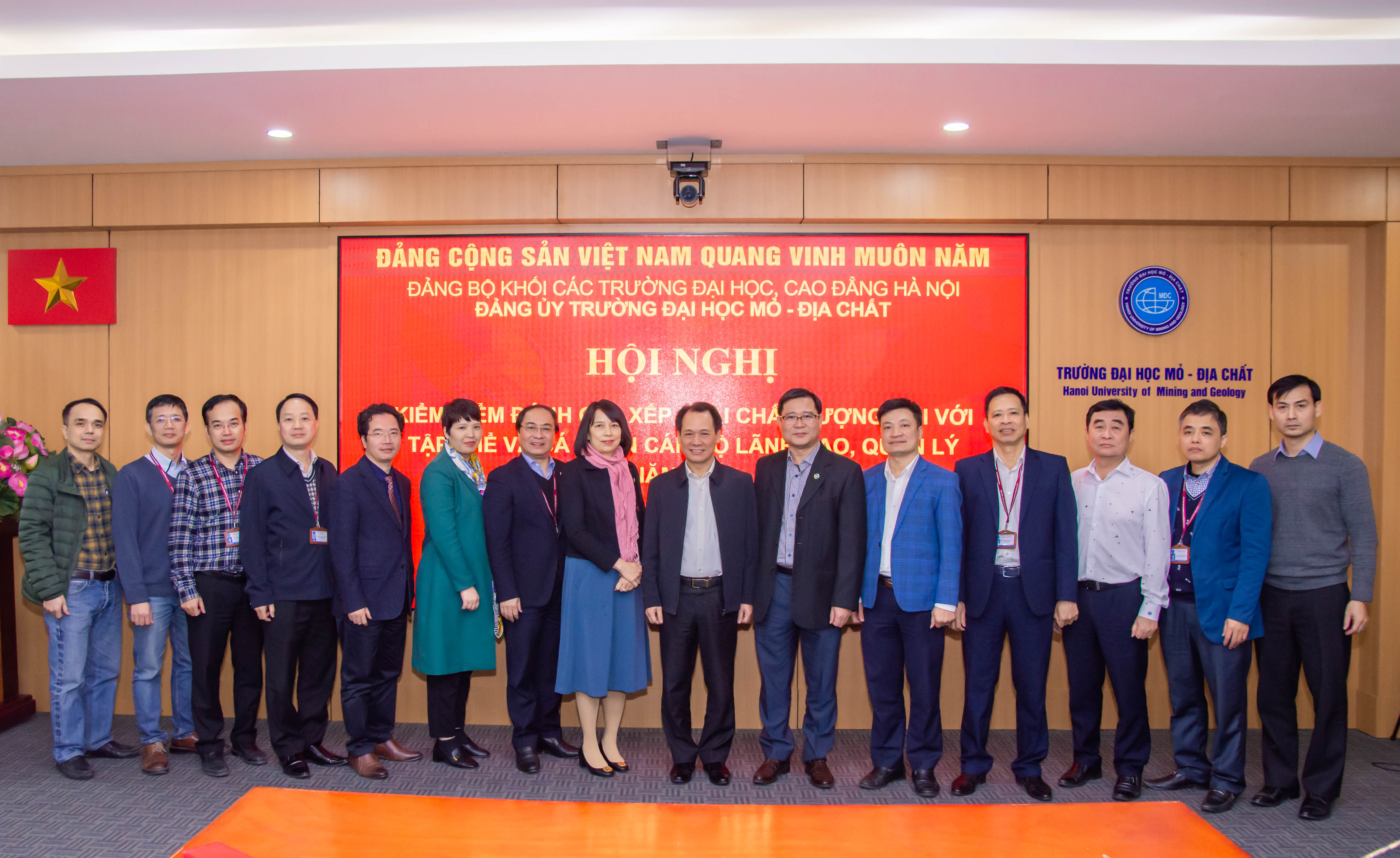 Thực hiện Công văn số 3281-CV/ĐUK ngày 10/11/2022 của Đảng ủy Khối các trường Đại học, Cao đẳng Hà Nội về việc “kiểm điểm, đánh giá, xếp loại chất lượng đối với tổ chức đảng, đảng viên và tập thể cán bộ lãnh đạo, quản lý năm 2022”, vào 14h00 ngày 14/12/2022, Đảng ủy Trường Đại học Mỏ - Địa chất đã tổ chức Hội nghị kiểm điểm năm 2022.